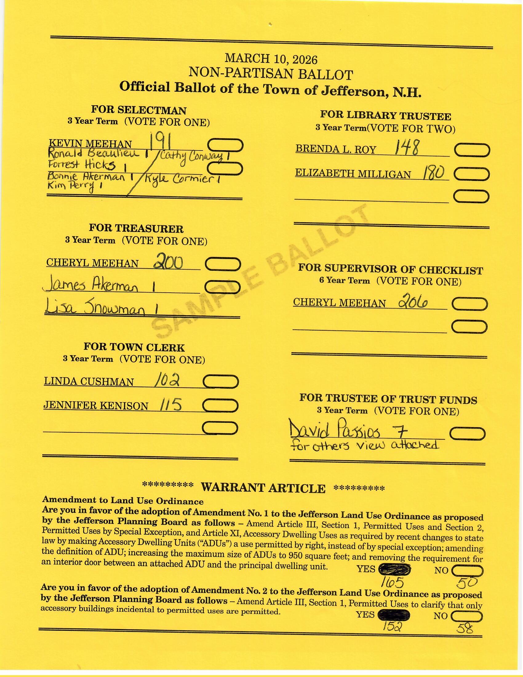 Town Meeting Poll Results